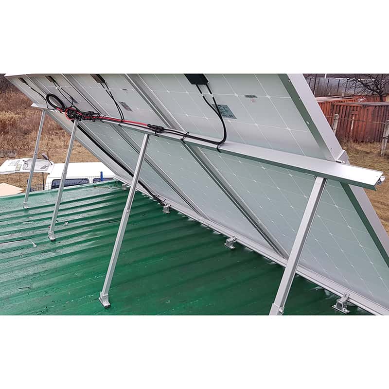 Данный комплект предназначен для монтажа солнечных батарей на плоской или наклонной поверхности (земле, крыше из мягкой черепицы либо металлочерепицы) в один ряд. Регулируемый угол наклона ( от 10 до 15 градусов ), позволяет эффективней использовать батареи, за счет изменения площади воздействия прямых солнечных лучей.